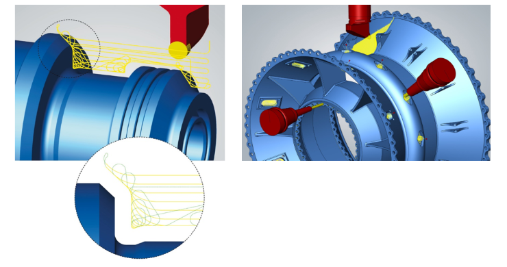 As soluções hyperMILL Turning fornecem a integração perfeita de estratégias de fresagem e torneamento em uma única interface de utilizador. Isso fornece acesso altamente conveniente às vantagens de uma máquina de fresagem-torneamento moderna para maquinação completa em uma única configuração. Todas as estratégias de fresagem e torneamento podem ser combinadas conforme desejado, o que resulta em um processo de produção totalmente flexível.