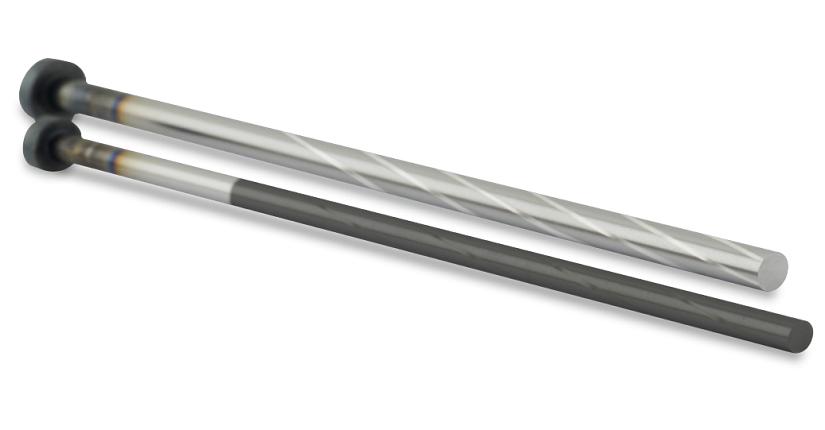 Os ejetores de ventilação não só estão disponíveis em todos os diâmetros comuns entre dois e doze milímetros, mas também em tamanhos intermédios e até um comprimento padrão de 450 mm. Em soluções especiais, os ejetores são também fabricados até um comprimento de 750 mm, incluindo a geometria helicoidal. Como padrão adicional à versão endurecida (300133), a KNARR também oferece o pino ejetor de ventilação com um revestimento DLC (300133DLC). O revestimento DLC robusto não necessita de qualquer lubrificação adicional e é particularmente adequado nesta aplicação para evitar o entupimento da geometria helicoidal.