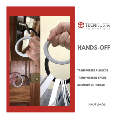 Em parceria com a MJ3K, outra empresa do grupo, a Tecnijusta desenvolveu uma peça inspirada num gancho, que permite ao utilizador suportar pesos, conferindo também maior segurança e proteção em locais públicos, evitando que se usem as mãos nos diversos objetos. O nome deriva disso mesmo, Hands-Off (sem mãos).