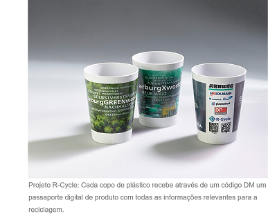 A Arburg trabalha com parceiros de renome, entre outros, em tecnologias inovadoras para um economia circular fechada. Na qualidade de parceiro exclusivo como fabricante de máquinas do projeto R-Cycle, lançado pela empresa Reifenhäuser, fica demonstrado com o exemplo prático dos copos como, depois da fase de utilização, se pode recuperar material reciclado valioso a partir dos restos de plástico e fechar o circulo do material reciclável.