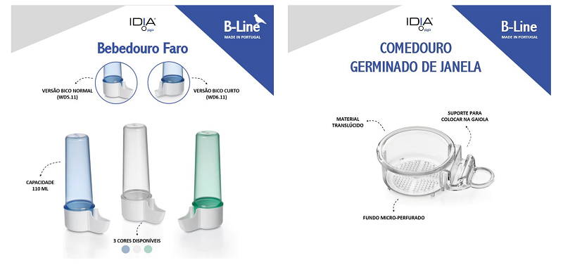 Sob a alçada da marca ID!A RP, a Moldes RP anunciou o lançamento de dois novos produtos: um comedouro germinado de janela (WOFC0.08), em material translúcido, e um bebedouro com capacidade de 110 ml, disponível em três cores.